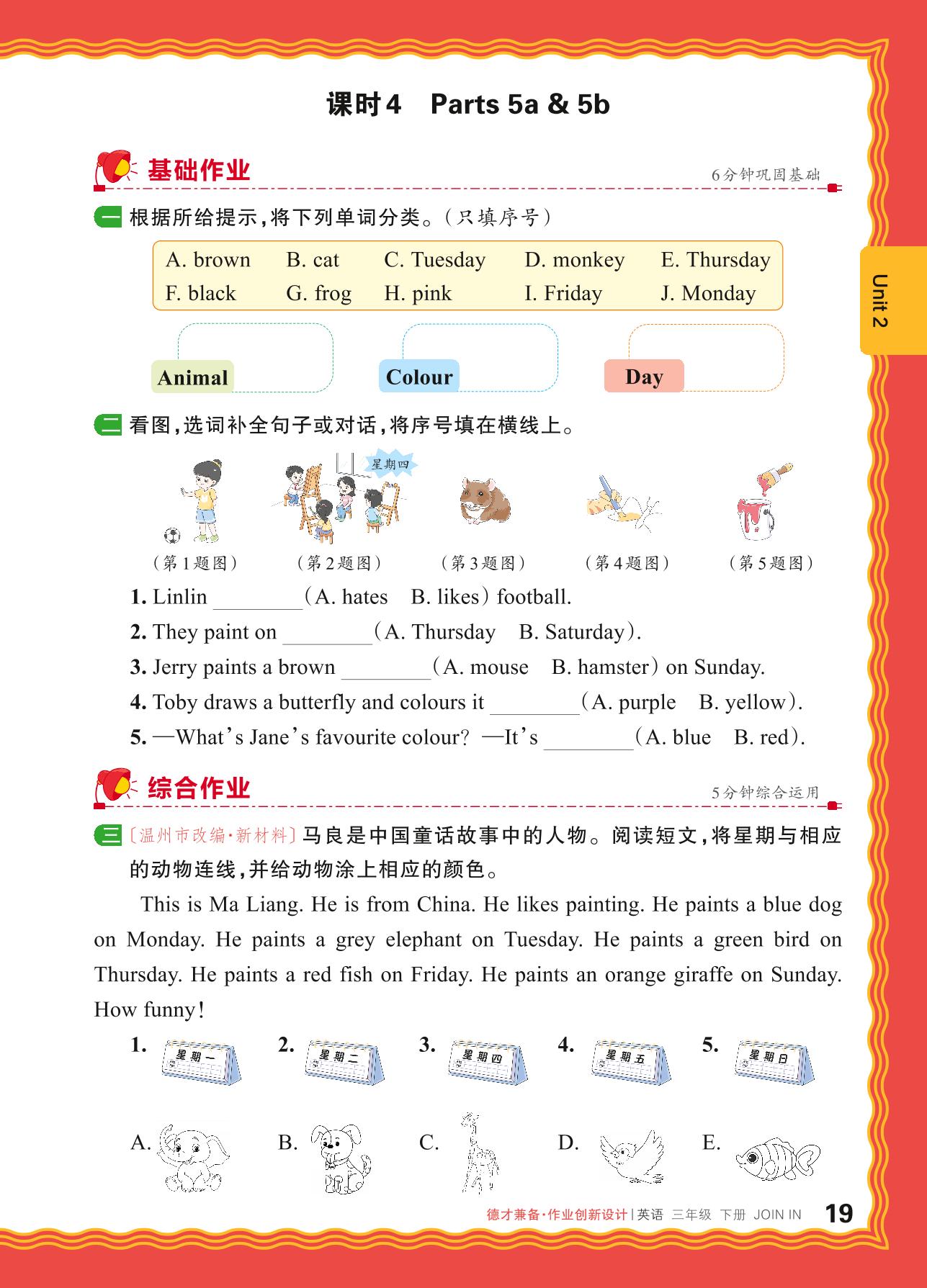 2024春下册三年级英语剑桥版 Unit 2—课时 4 Parts 5a & 5b