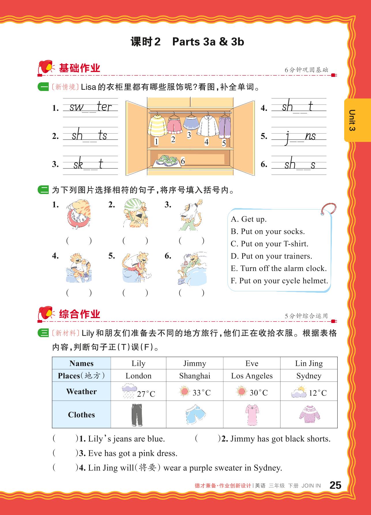 2024春下册三年级英语剑桥版 Unit 3—课时 2 Parts 3a & 3b