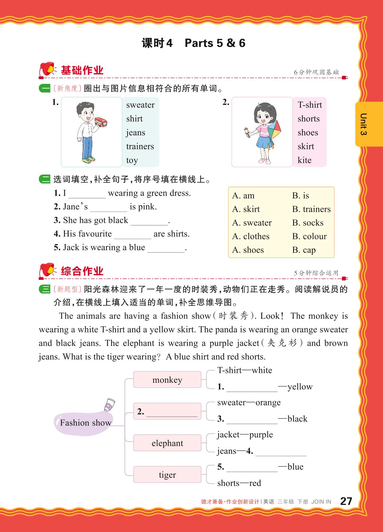 2024春下册三年级英语剑桥版 Unit 3—课时 4 Parts 5 & 6