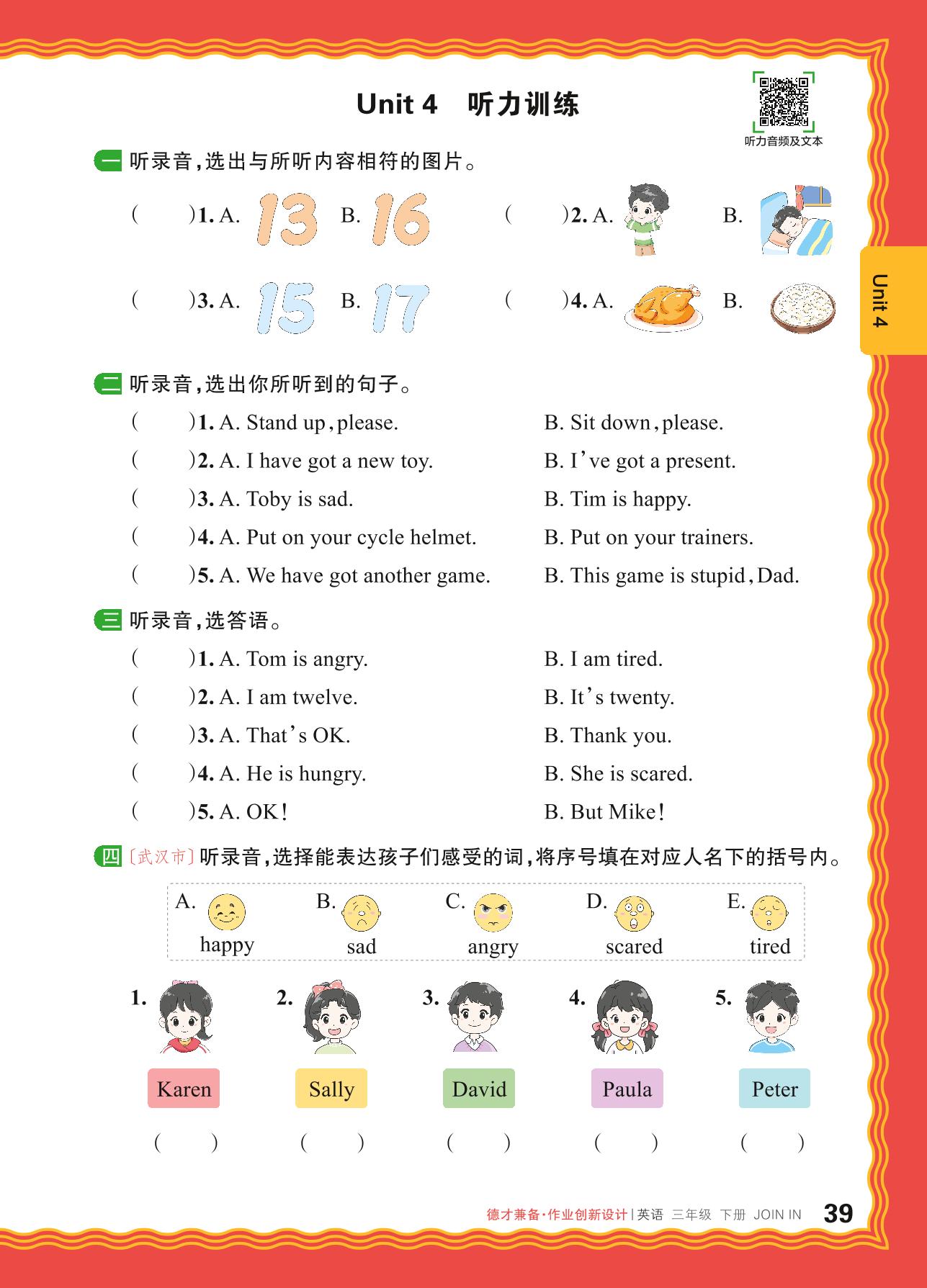 2024春下册三年级英语剑桥版 Unit 4 听力训练