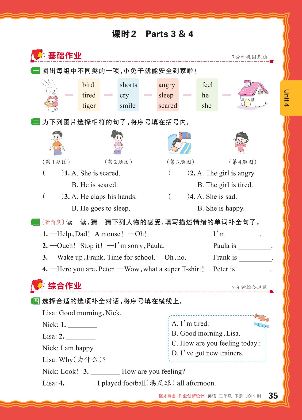 2024春下册三年级英语剑桥版 Unit 4—课时 2 Parts 3 & 4