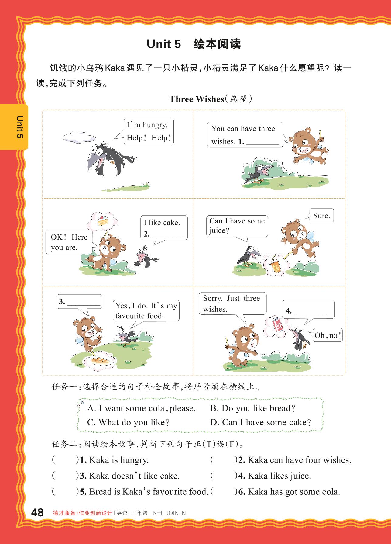 2024春下册三年级英语剑桥版 Unit 5 绘本阅读
