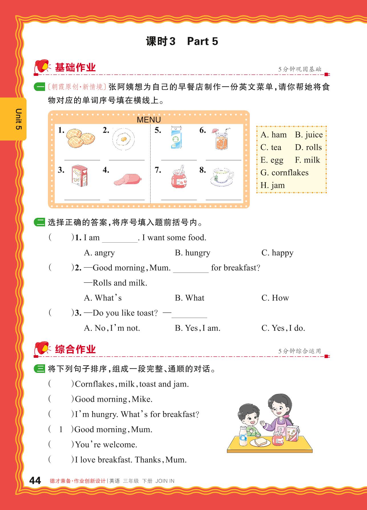 2024春下册三年级英语剑桥版 Unit 5—课时 3 Part 5