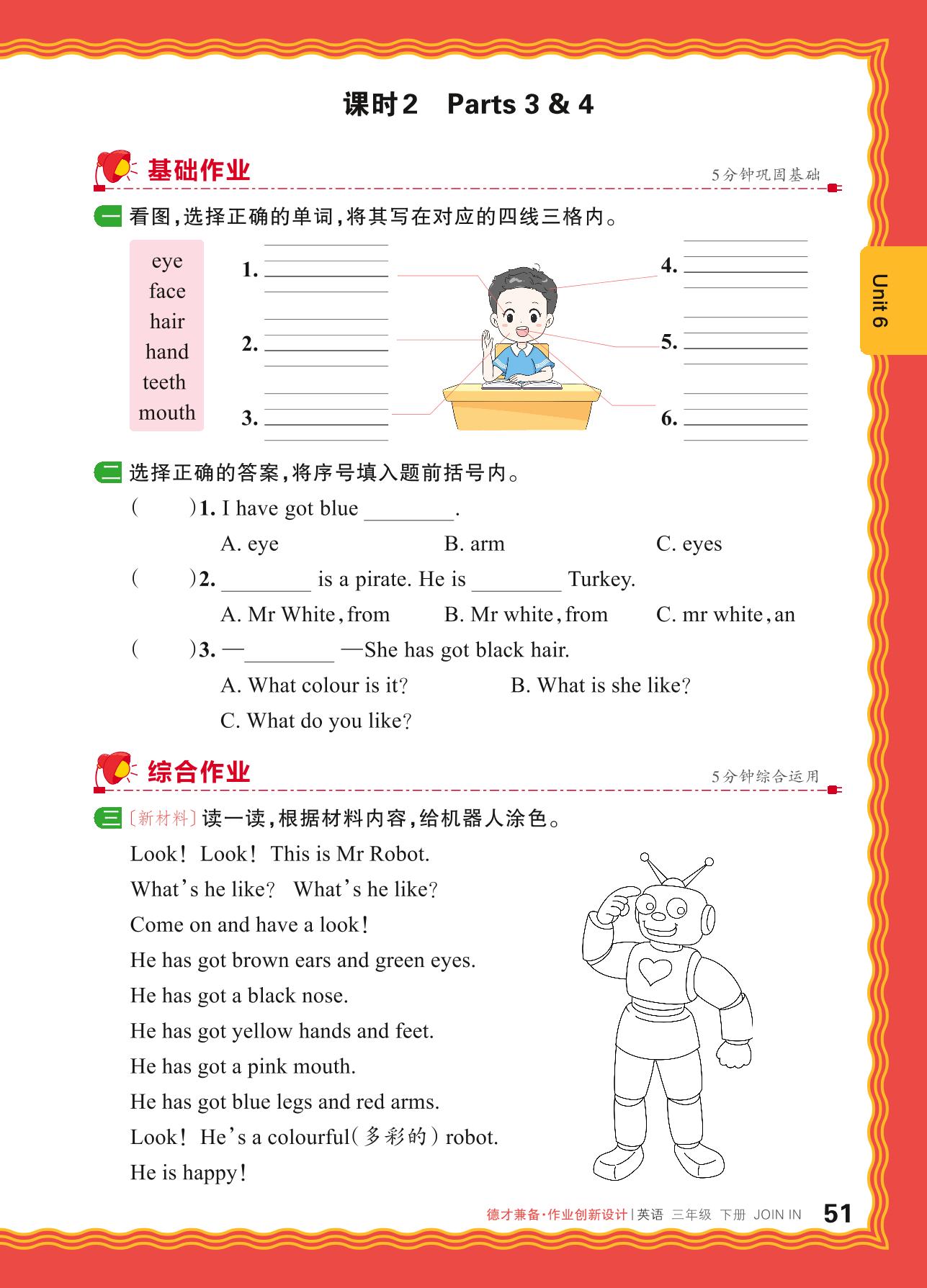 2024春下册三年级英语剑桥版 Unit 6—课时 2 Parts 3 & 4