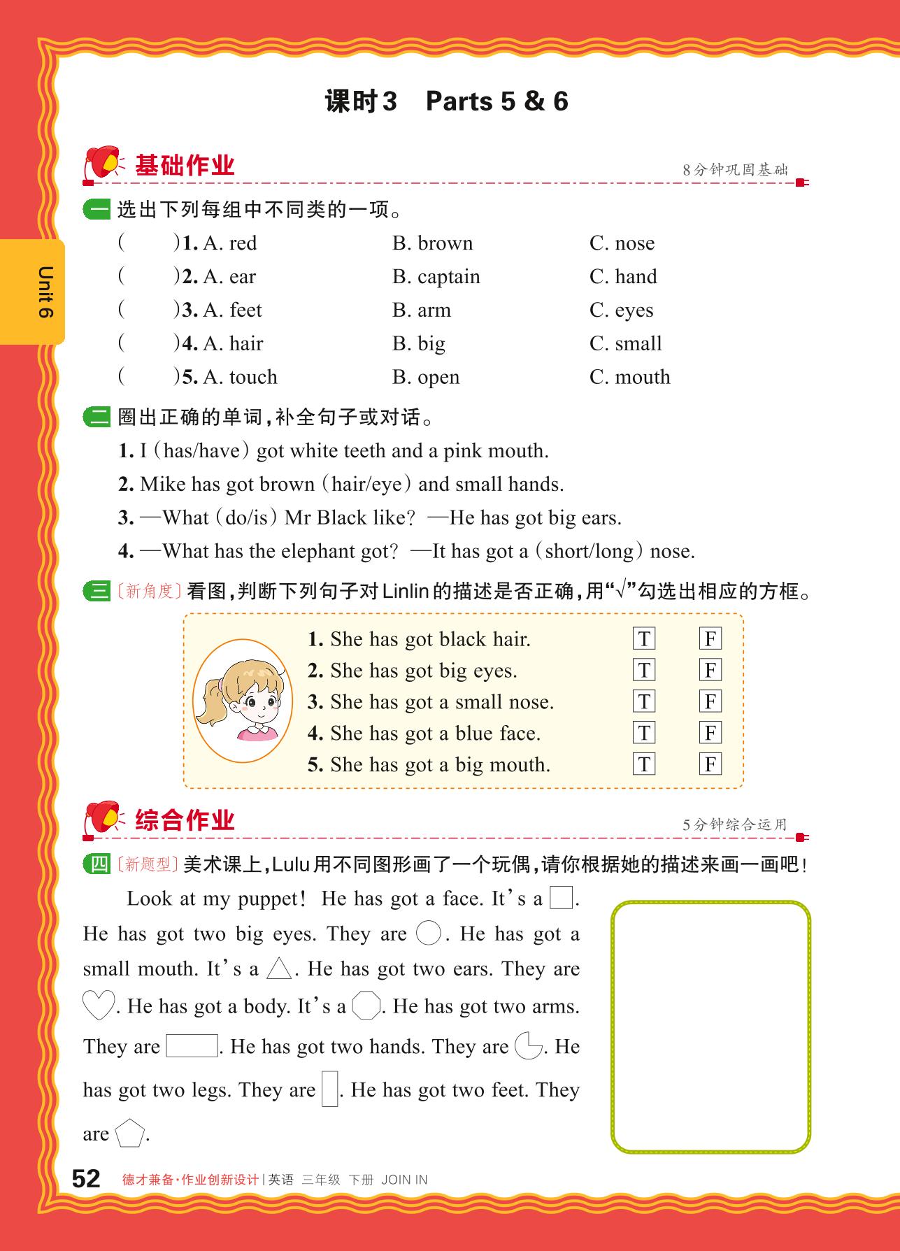 2024春下册三年级英语剑桥版 Unit 6—课时 3 Parts 5 & 6