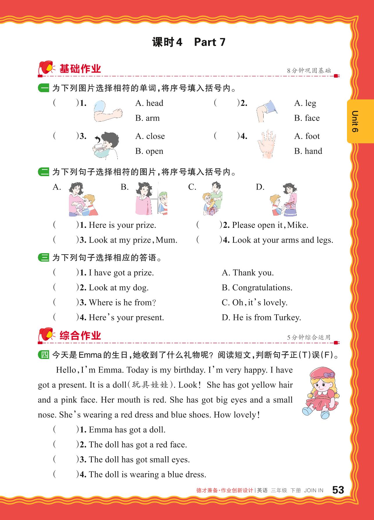 2024春下册三年级英语剑桥版 Unit 6—课时 4 Part 7