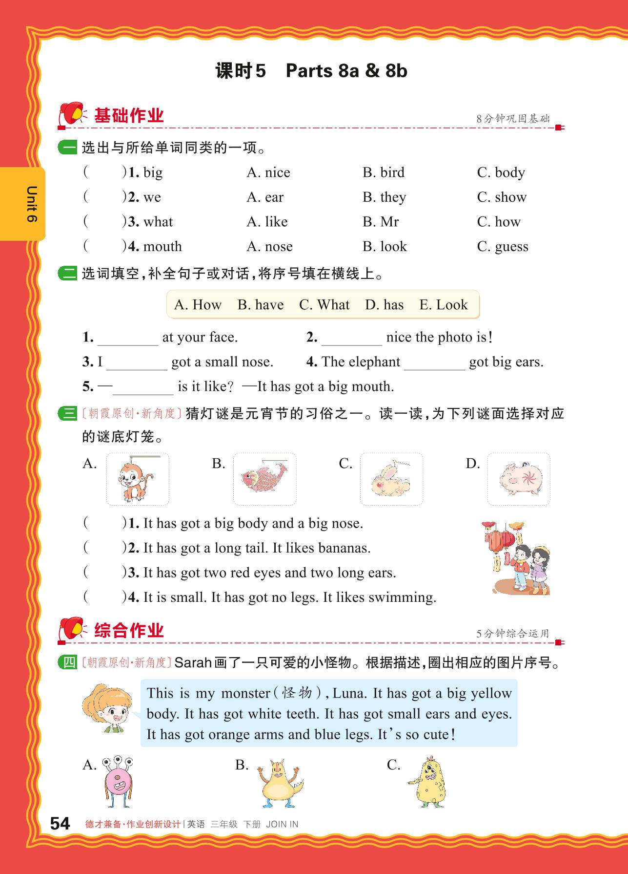 2024春下册三年级英语剑桥版 Unit 6—课时 5 Parts 8a & 8b