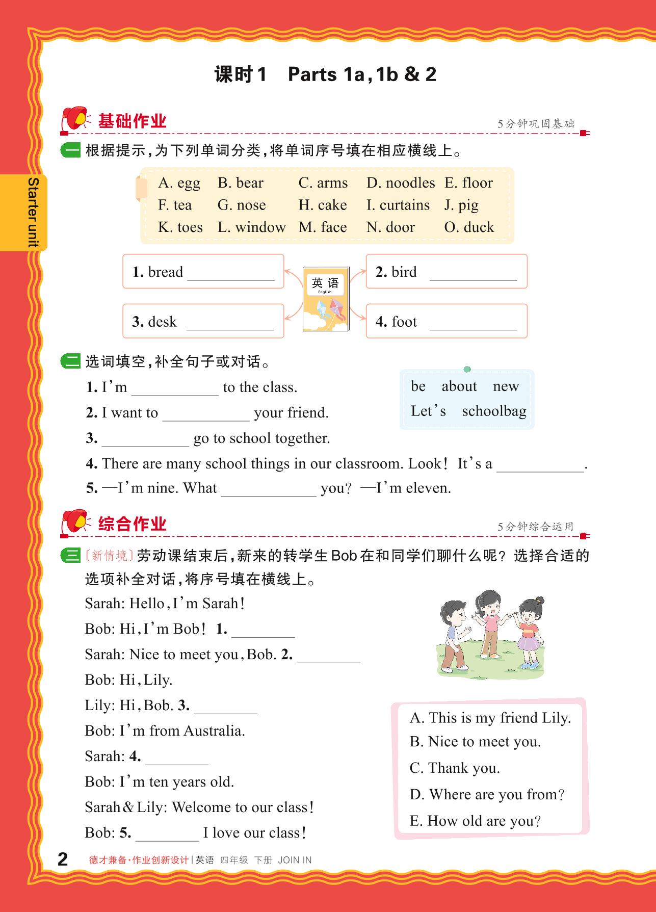 2024春下册四年级英语剑桥版 Starter unit—课时 1 Parts 1a,1b & 2