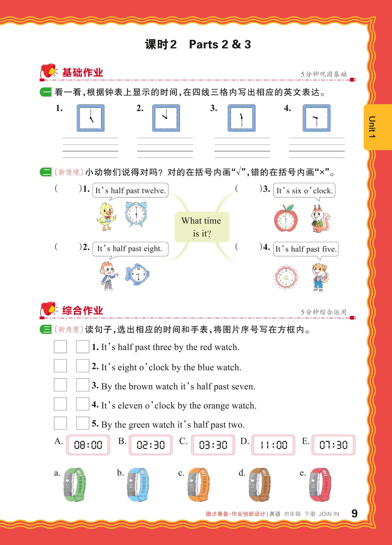 2024春下册四年级英语剑桥版 Unit 1—课时 2 Parts 2 & 3