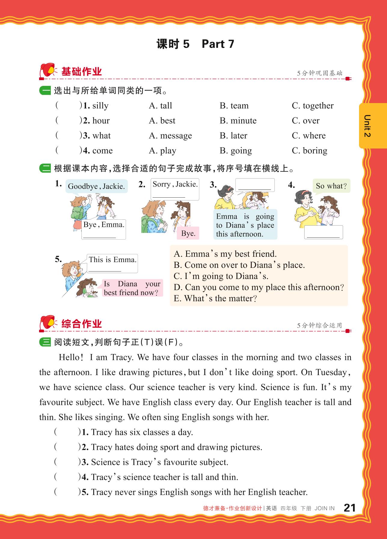2024春下册四年级英语剑桥版 Unit 2—课时 5 Part 7