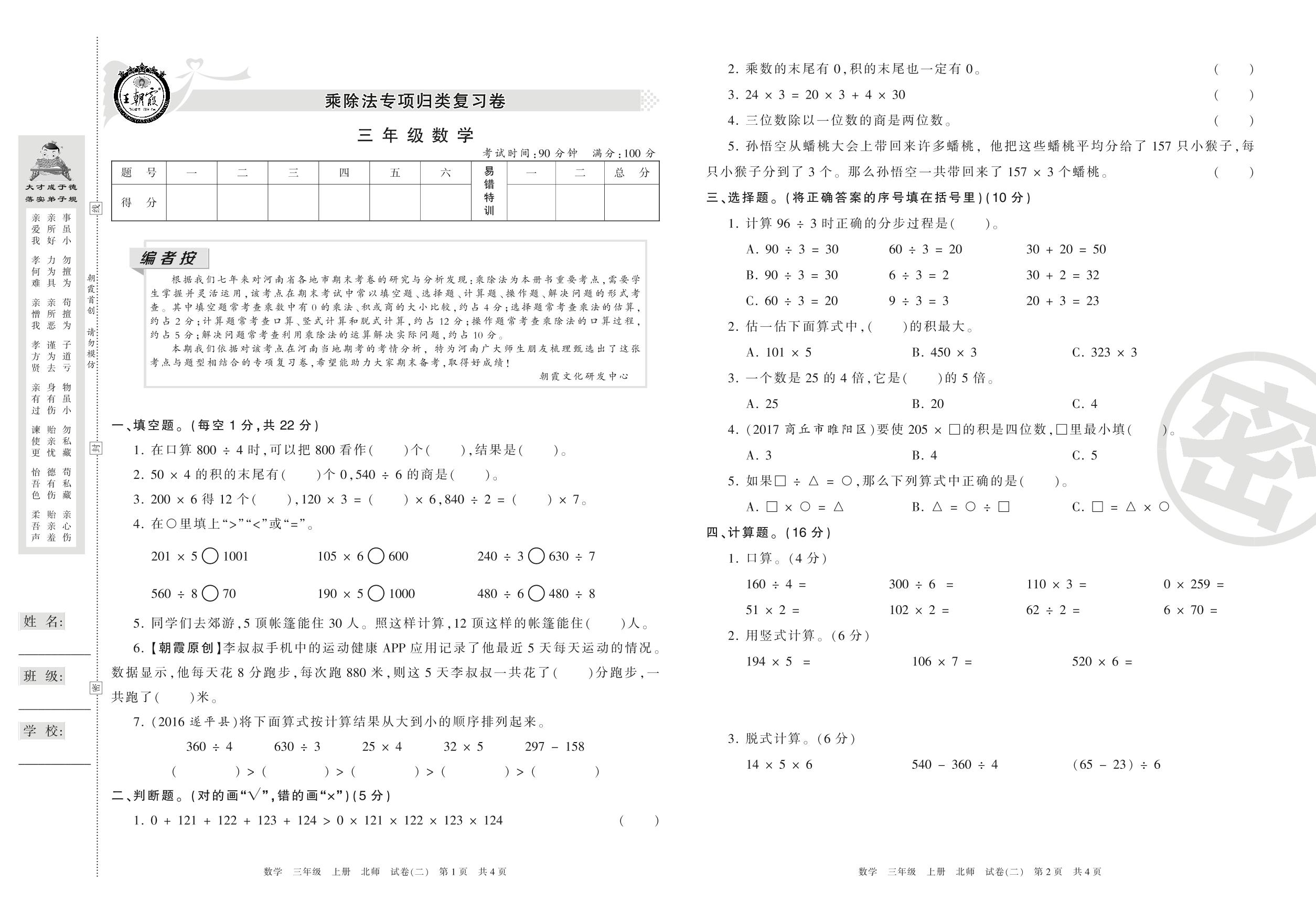 王朝霞期末专项卷三年级上册数学(北师版)_R210804105345【2】