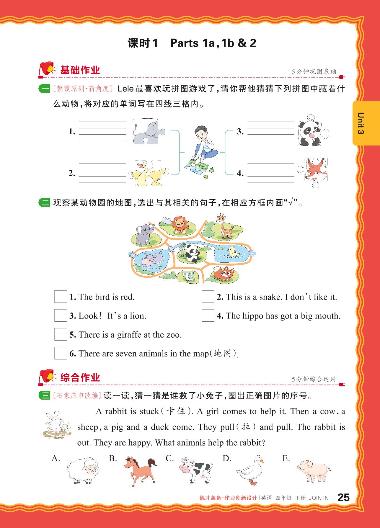 2024春下册四年级英语剑桥版 Unit 3—课时 1 Parts 1a,1b & 2