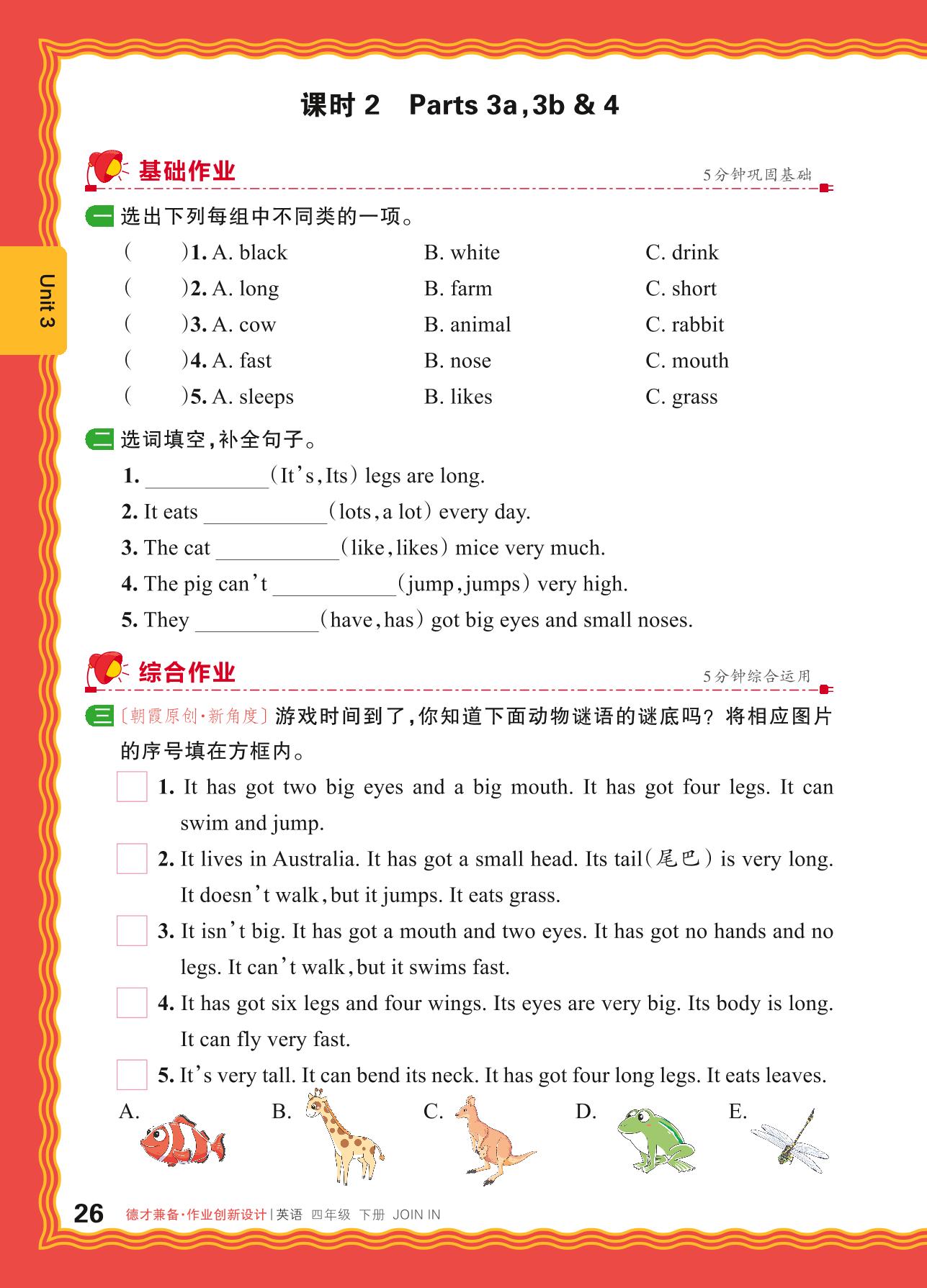2024春下册四年级英语剑桥版 Unit 3—课时 2 Parts 3a,3b & 4