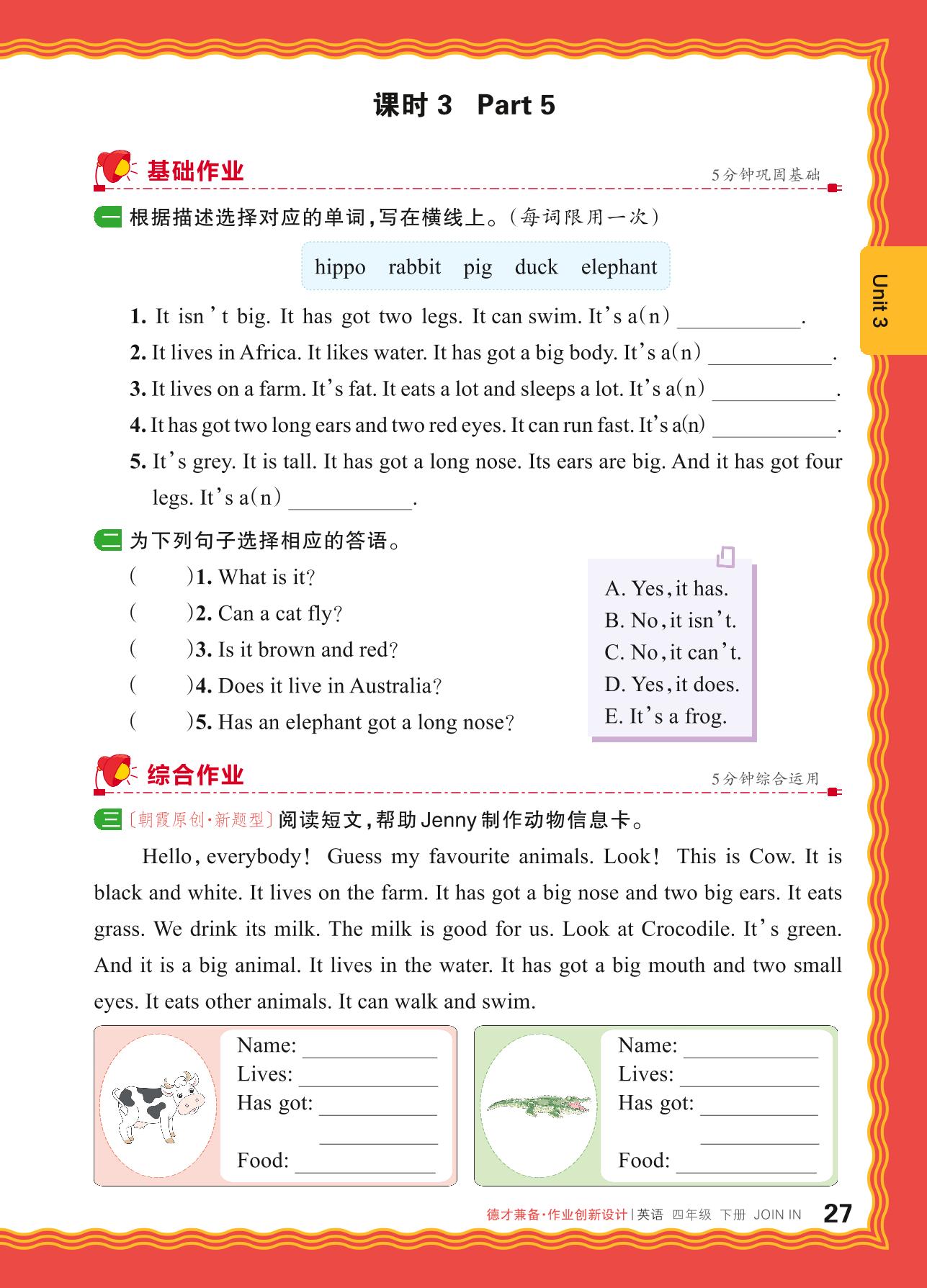 2024春下册四年级英语剑桥版 Unit 3—课时 3 Part 5