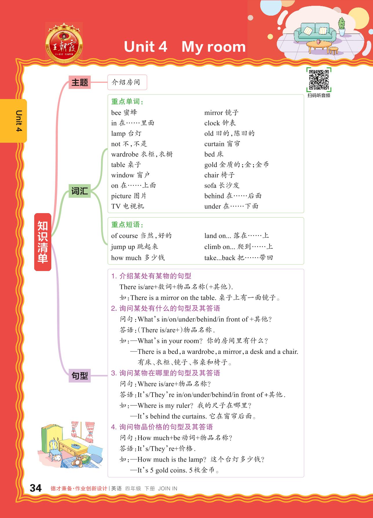 2024春下册四年级英语剑桥版 Unit 4 知识清单