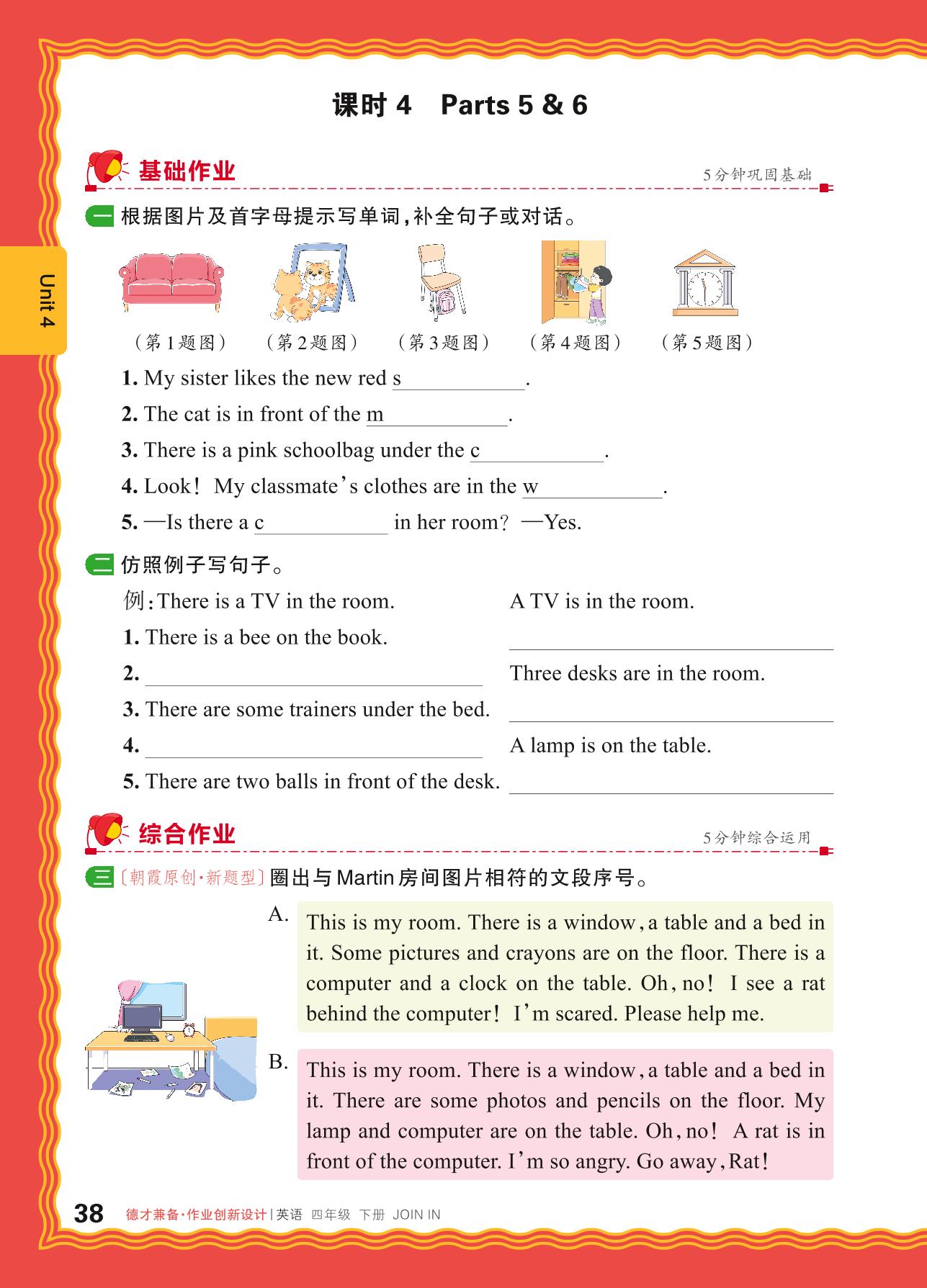 2024春下册四年级英语剑桥版 Unit 4—课时 4 Parts 5 & 6