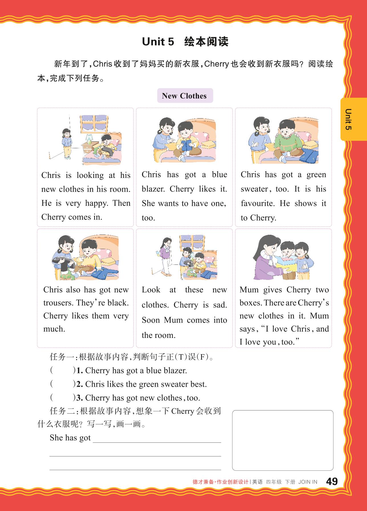 2024春下册四年级英语剑桥版 Unit 5 绘本阅读