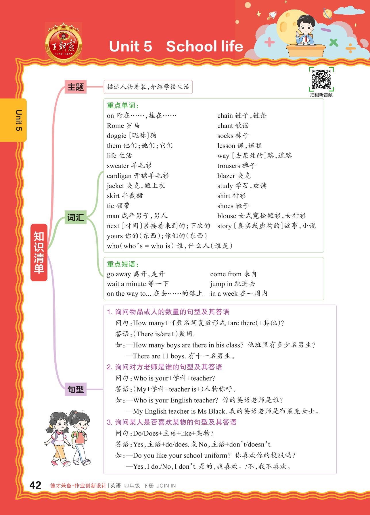 2024春下册四年级英语剑桥版 Unit 5 知识清单