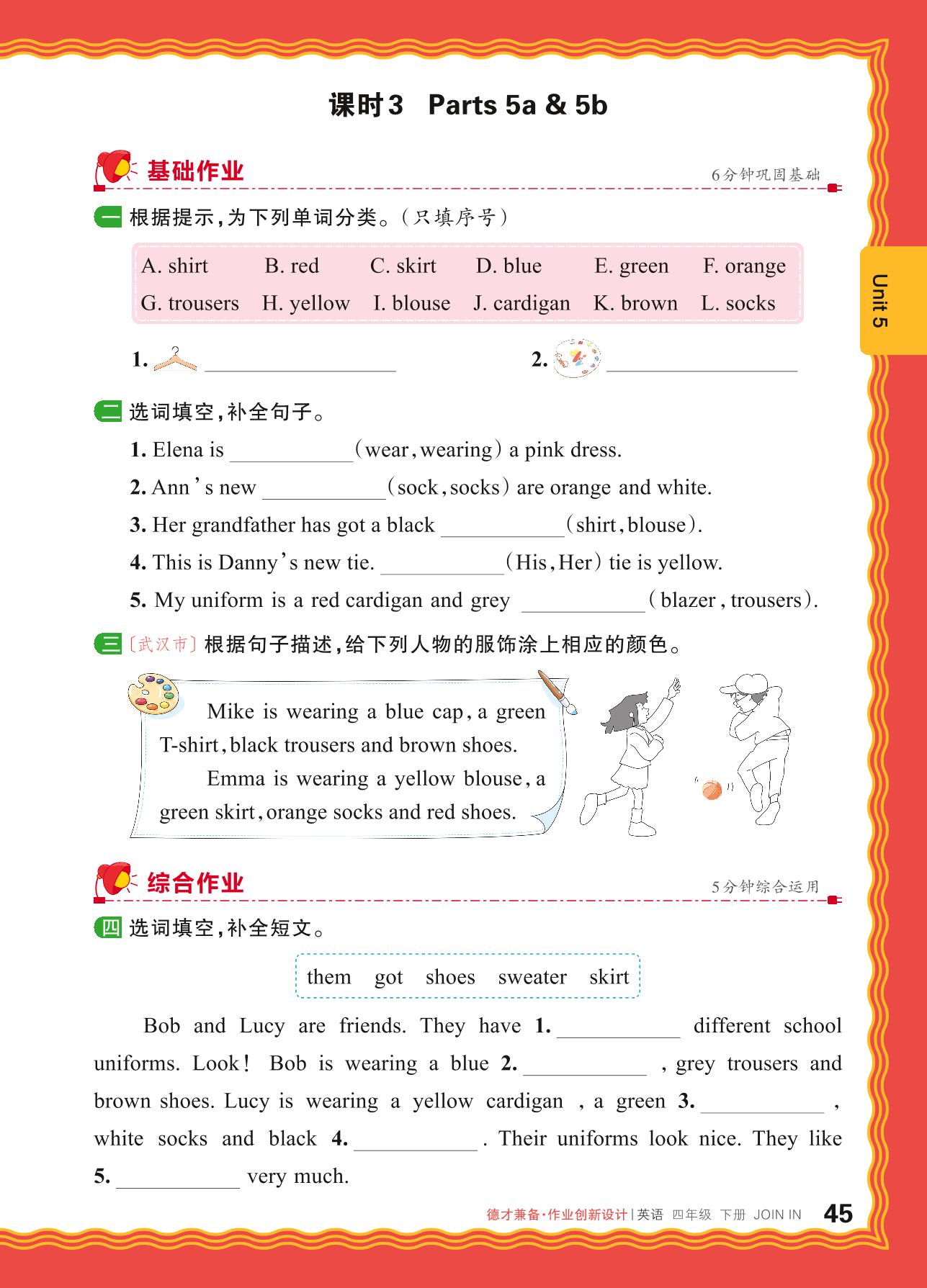 2024春下册四年级英语剑桥版 Unit 5—课时 3 Parts 5a & 5b
