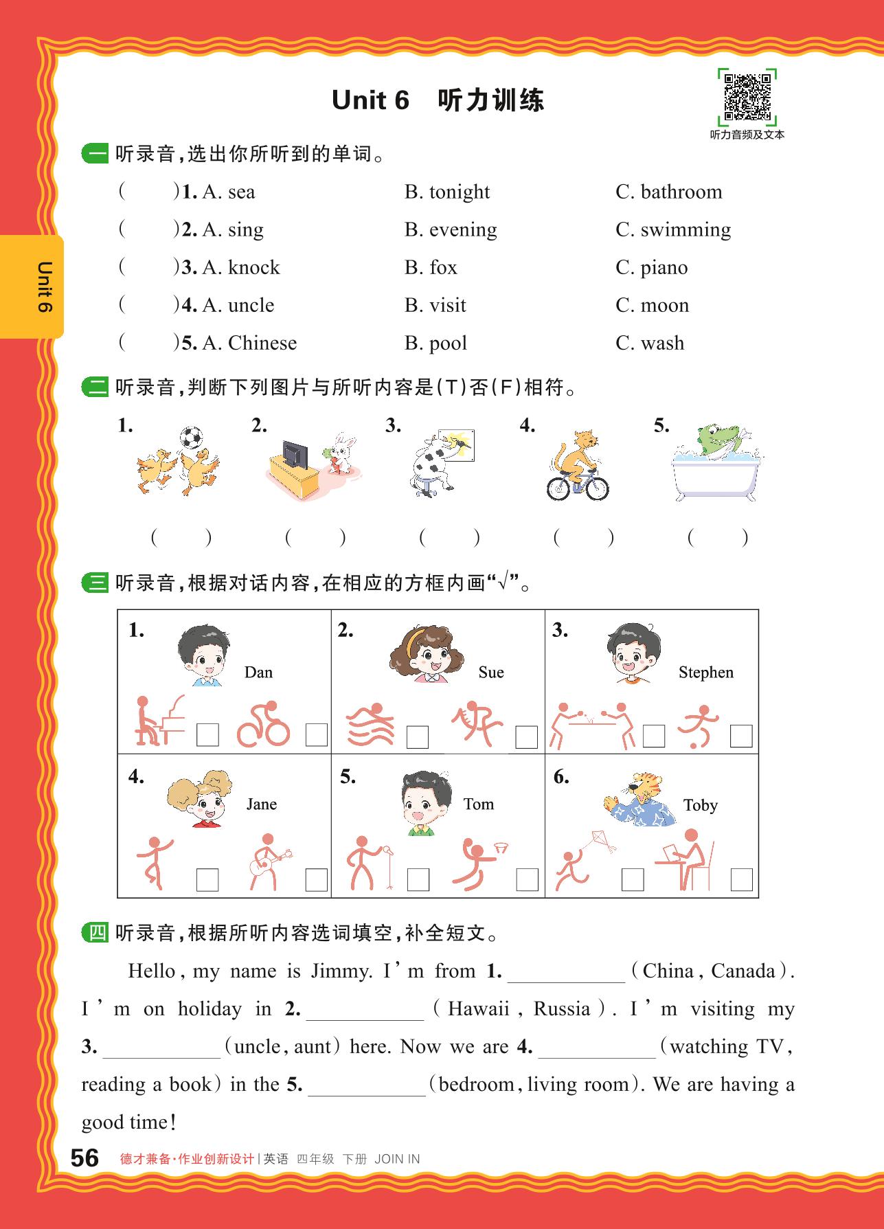 2024春下册四年级英语剑桥版 Unit 6 听力训练