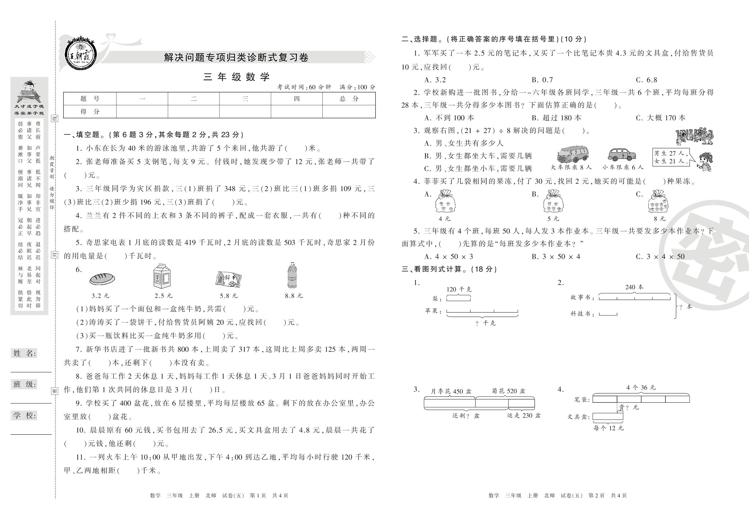 王朝霞期末专项卷三年级上册数学(北师版)【5】