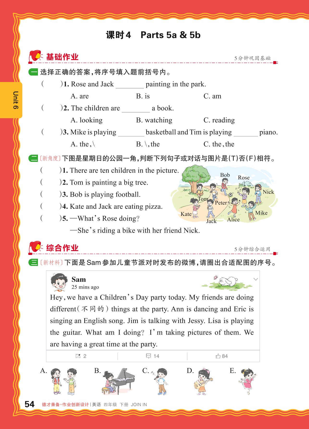 2024春下册四年级英语剑桥版 Unit 6—课时 4 Parts 5a & 5b