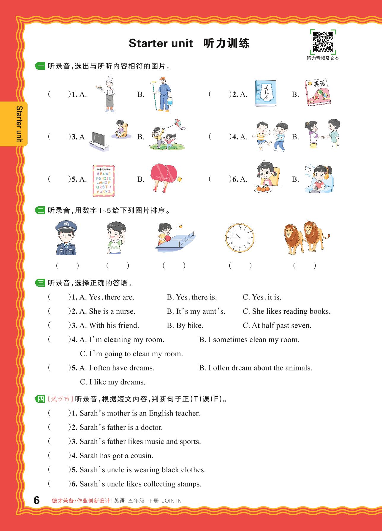 2024春下册五年级英语剑桥版 Starter unit 听力训练