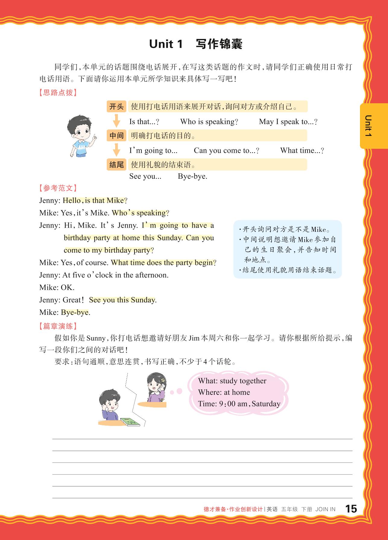 2024春下册五年级英语剑桥版 Unit 1 写作锦囊