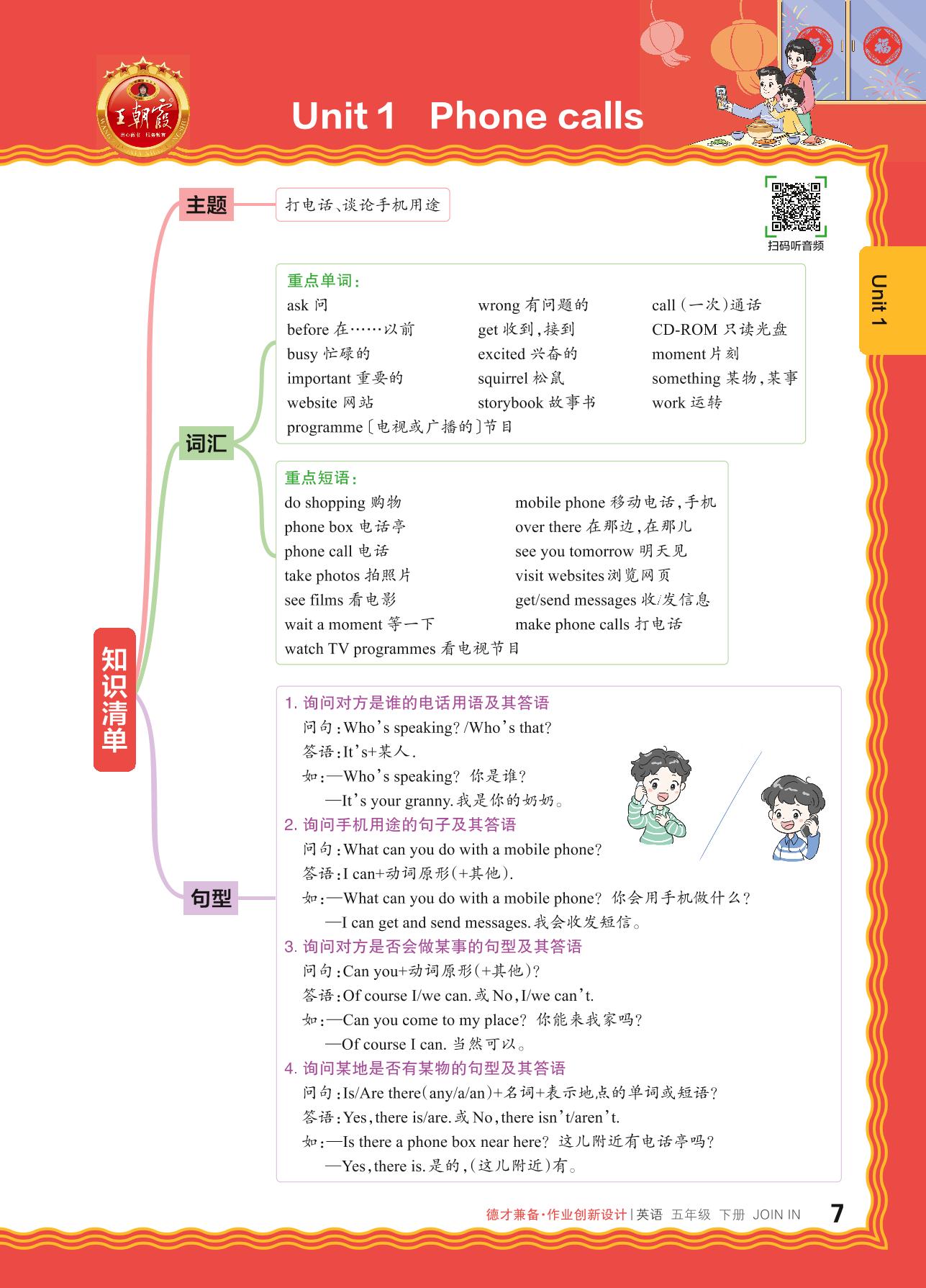 2024春下册五年级英语剑桥版 Unit 1 知识清单