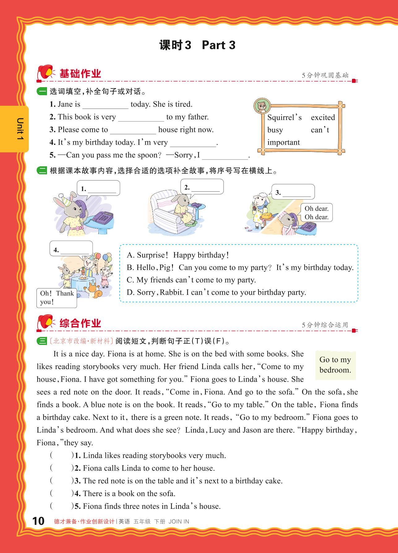 2024春下册五年级英语剑桥版 Unit 1—课时 3 Part 3