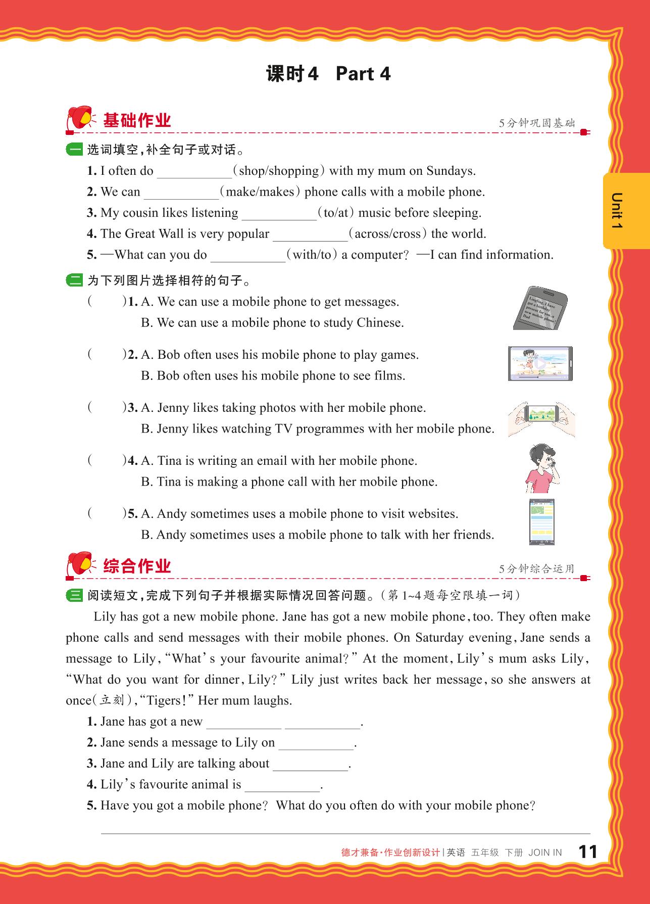 2024春下册五年级英语剑桥版 Unit 1—课时 4 Part 4