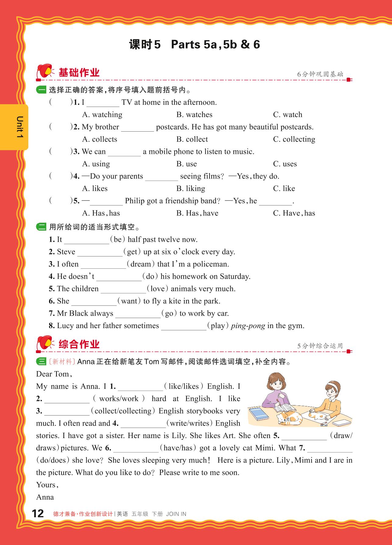 2024春下册五年级英语剑桥版 Unit 1—课时 5 Parts 5a,5b & 6