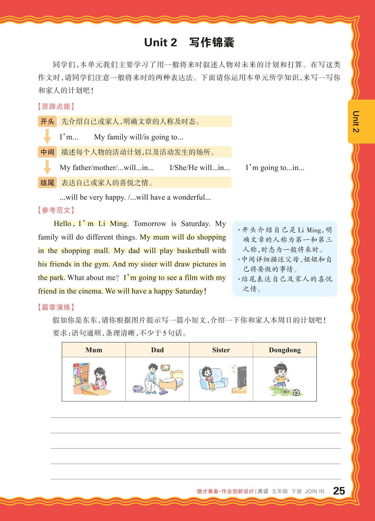 2024春下册五年级英语剑桥版 Unit 2 写作锦囊