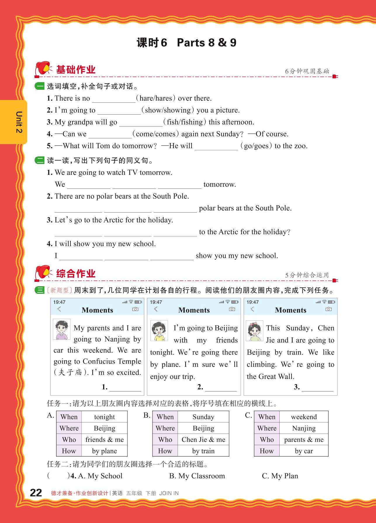 2024春下册五年级英语剑桥版 Unit 2—课时 6 Parts 8 & 9