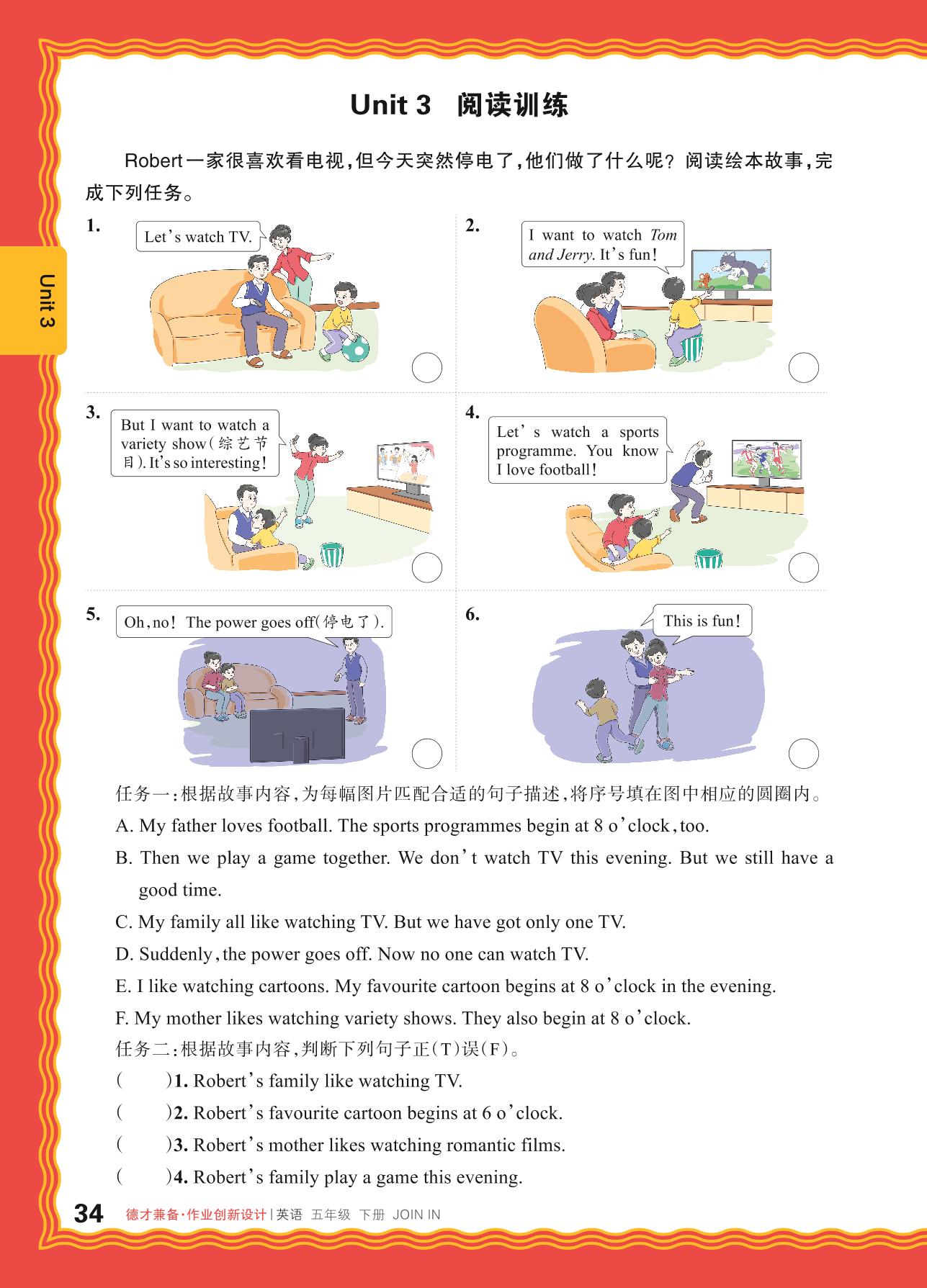 2024春下册五年级英语剑桥版 Unit 3 阅读训练