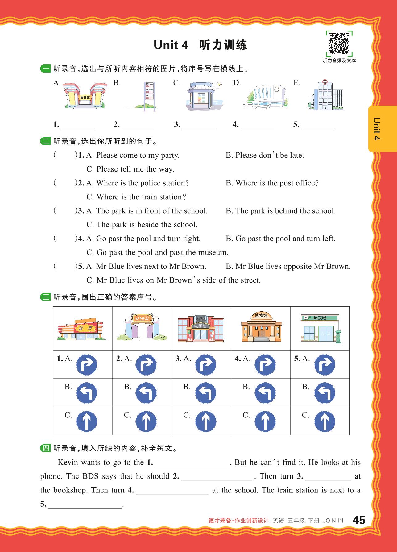 2024春下册五年级英语剑桥版 Unit 4 听力训练
