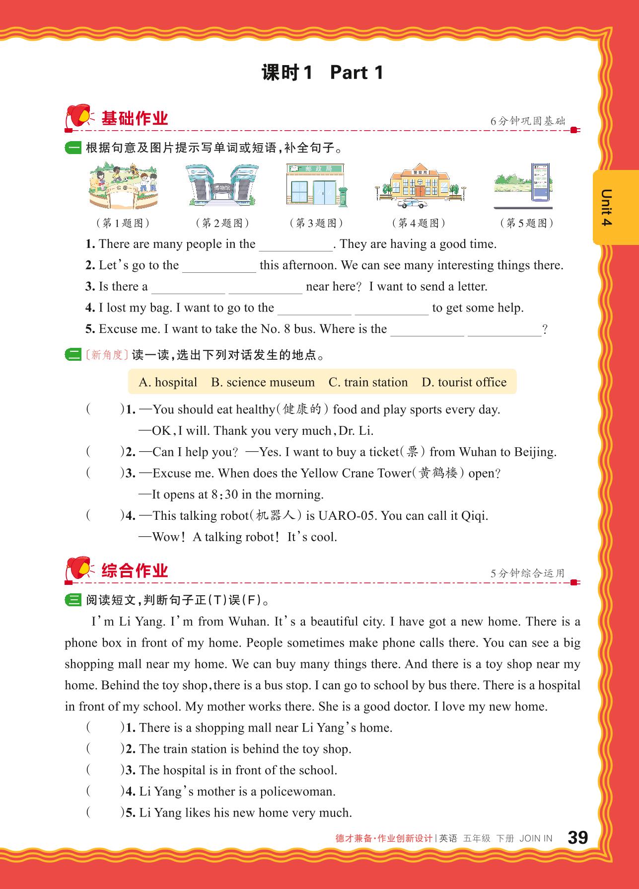 2024春下册五年级英语剑桥版 Unit 4—课时 1 Part 1
