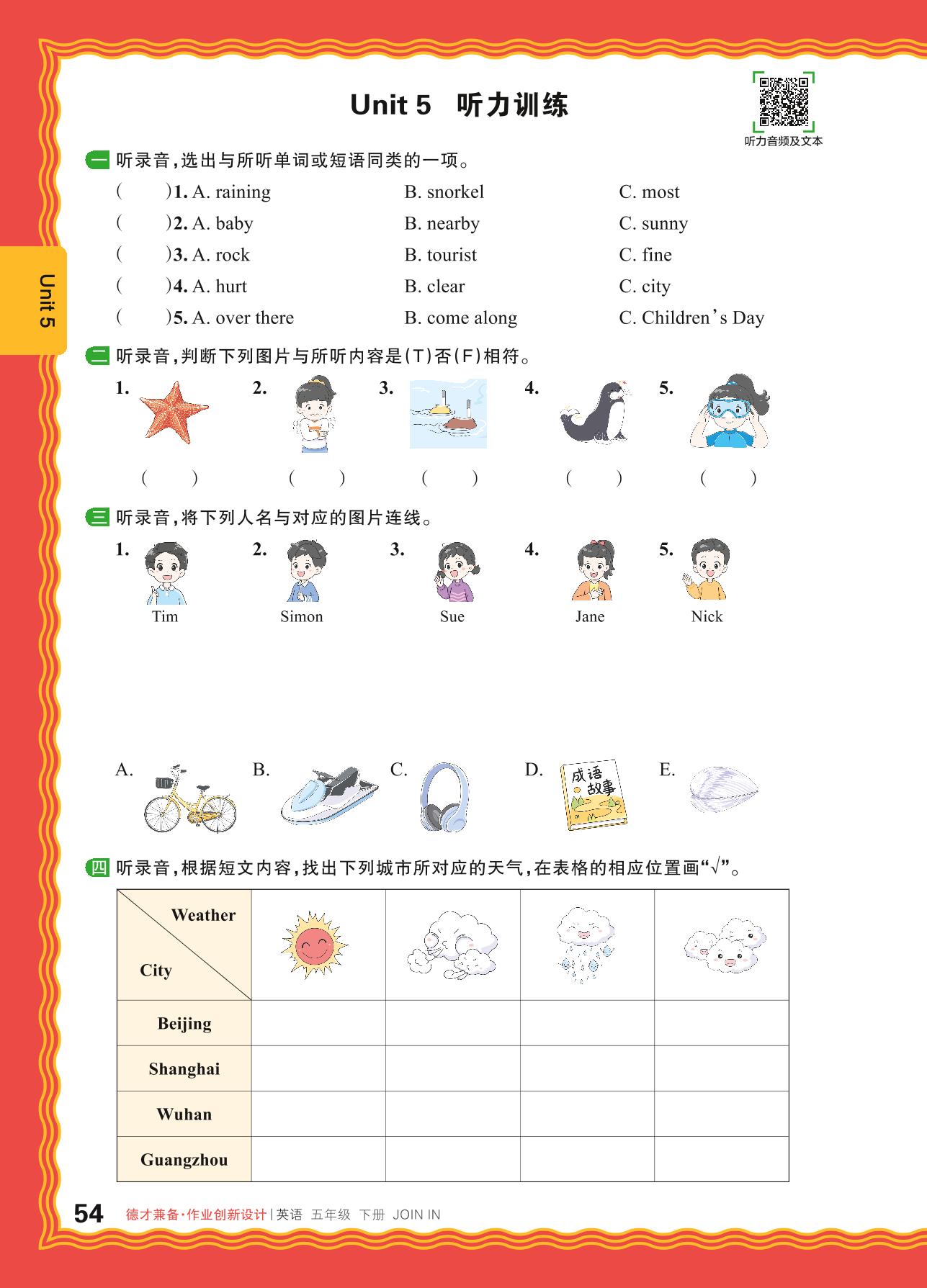 2024春下册五年级英语剑桥版 Unit 5 听力训练
