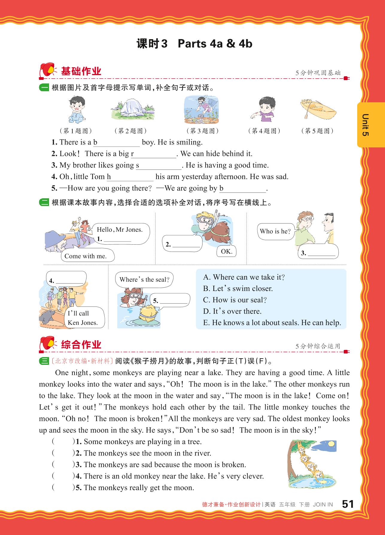 2024春下册五年级英语剑桥版 Unit 5—课时 3 Parts 4a & 4b
