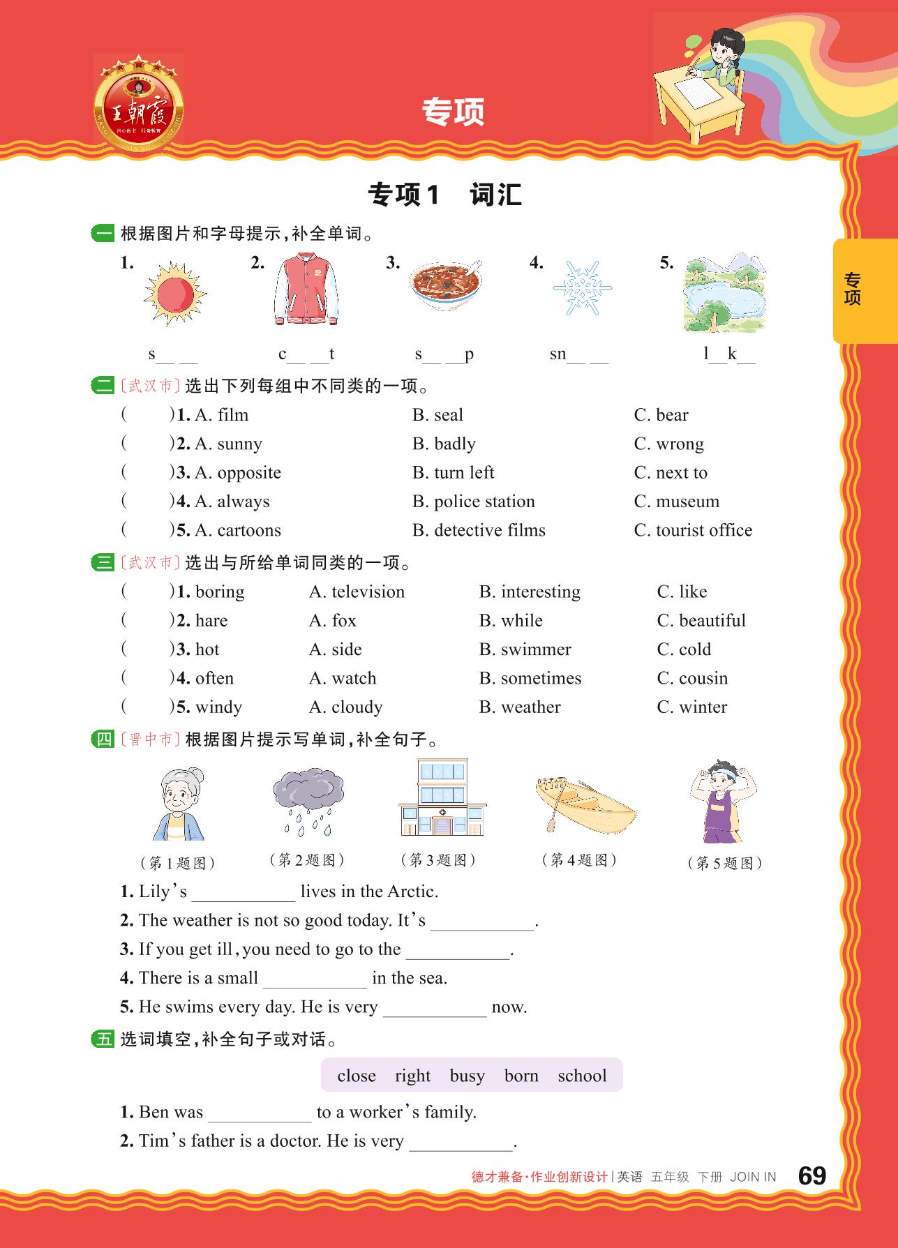 2024春下册五年级英语剑桥版 期末专项卷DC版·词汇【1】
