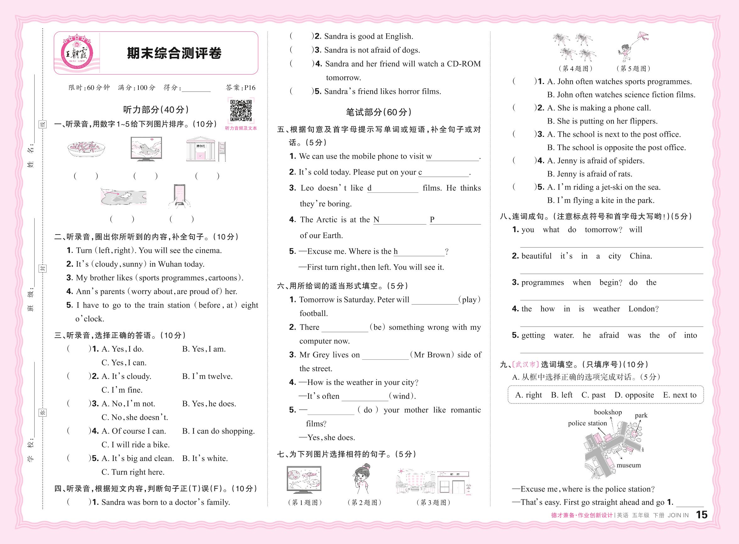 2024春下册五年级英语剑桥版 期末综合测评卷