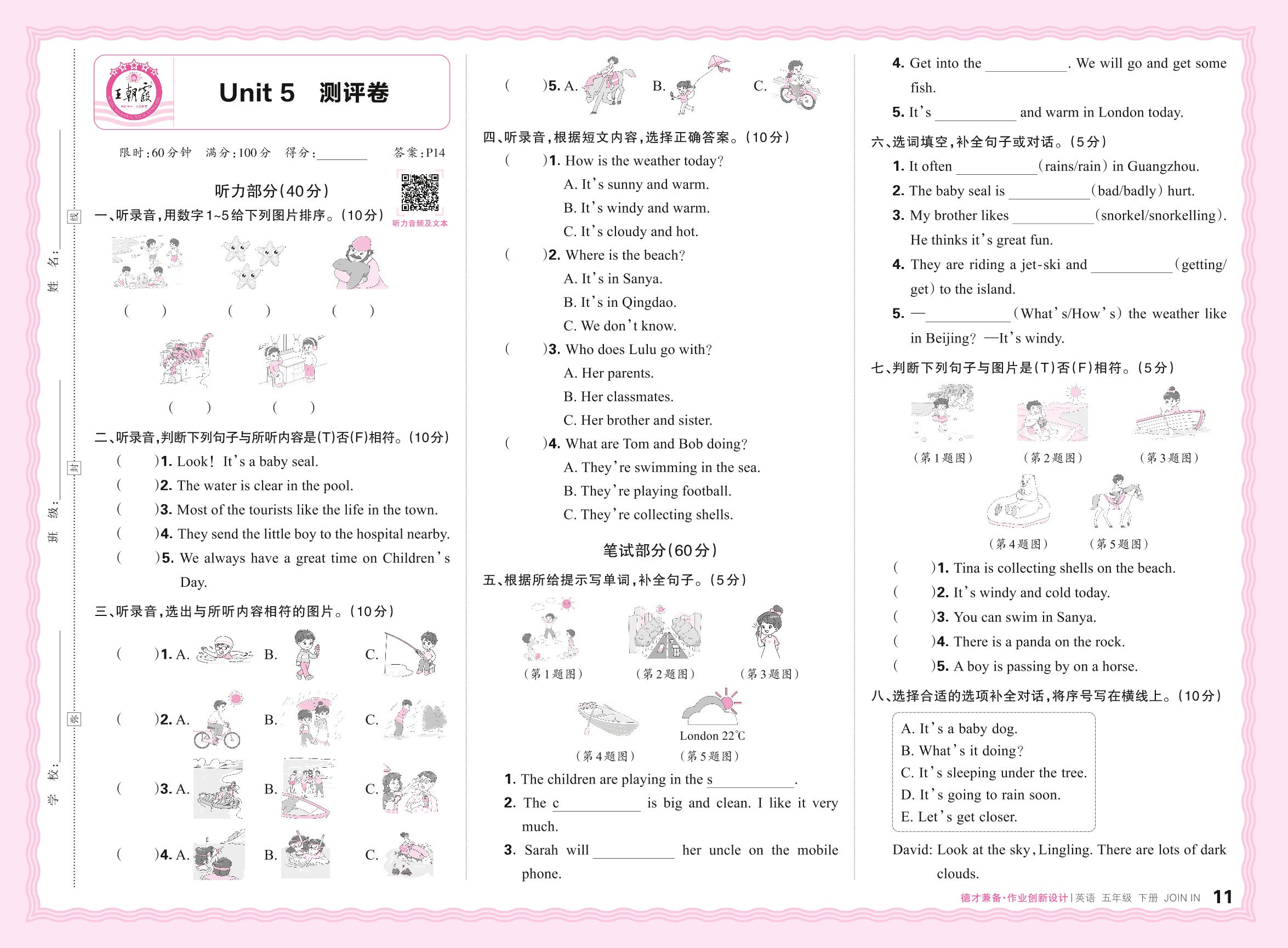 2024春下册五年级英语剑桥版 Unit 5 测评卷