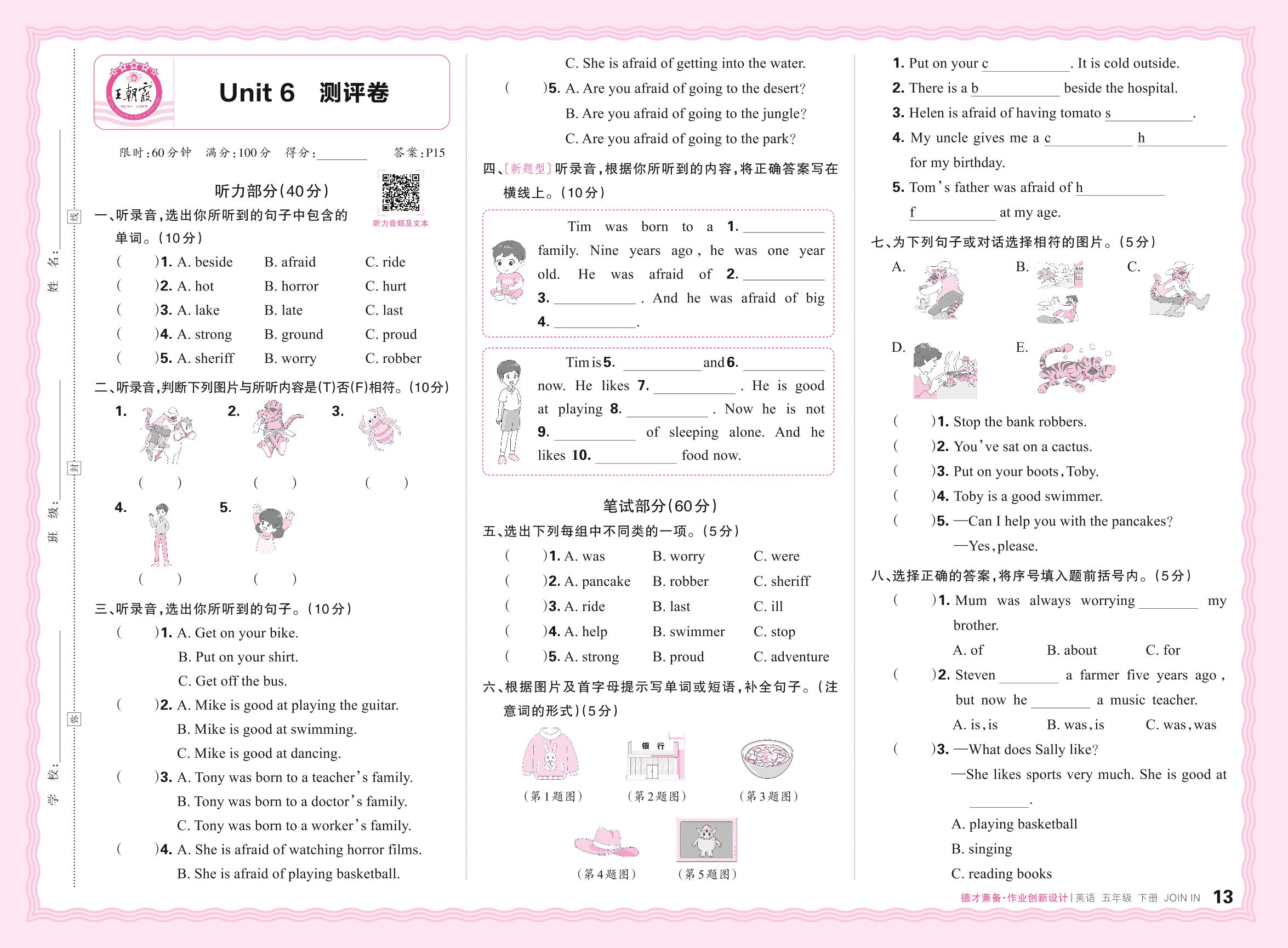 2024春下册五年级英语剑桥版 Unit 6 测评卷