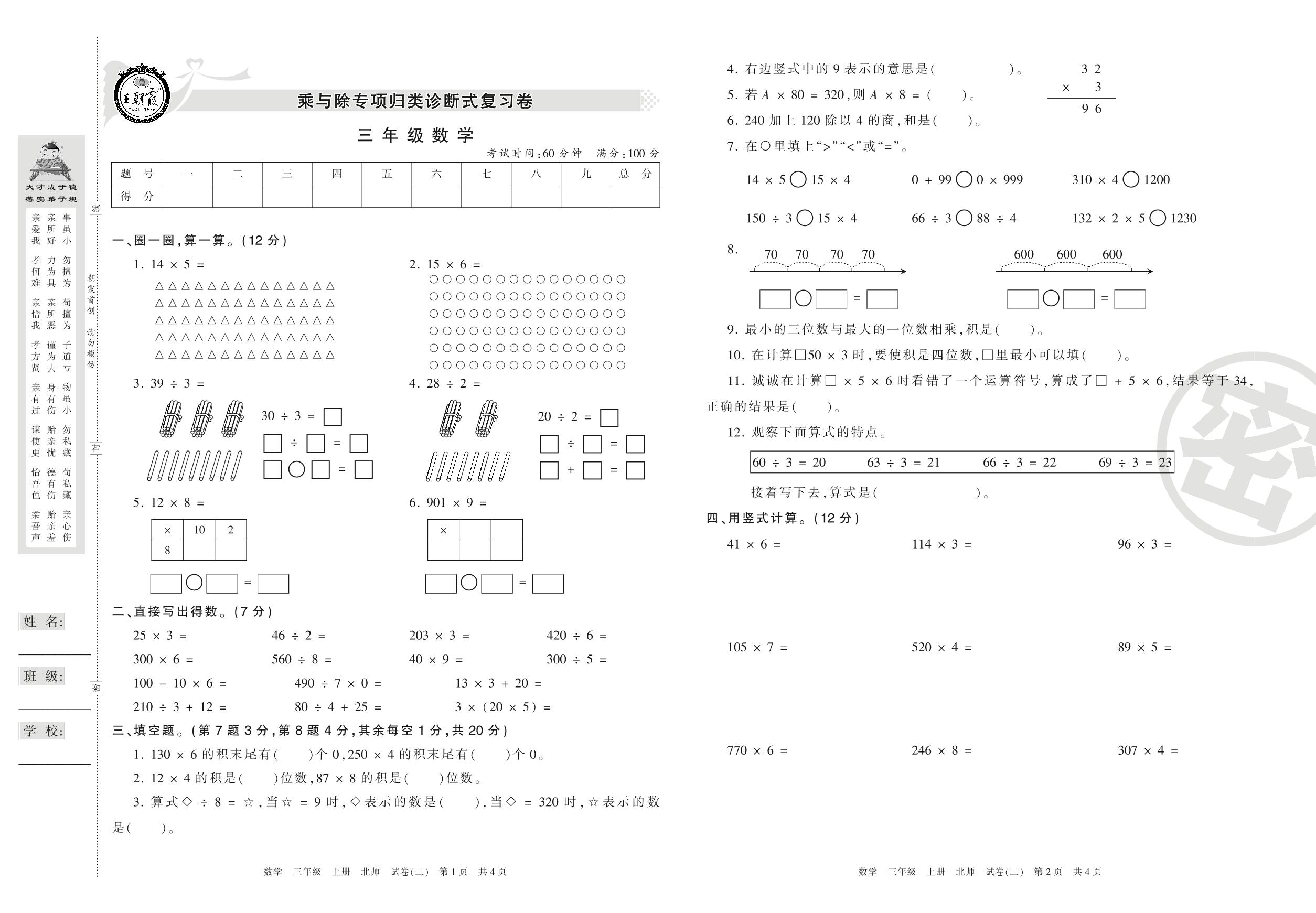 王朝霞期末专项卷三年级上册数学(北师版)_R210804105501【2】