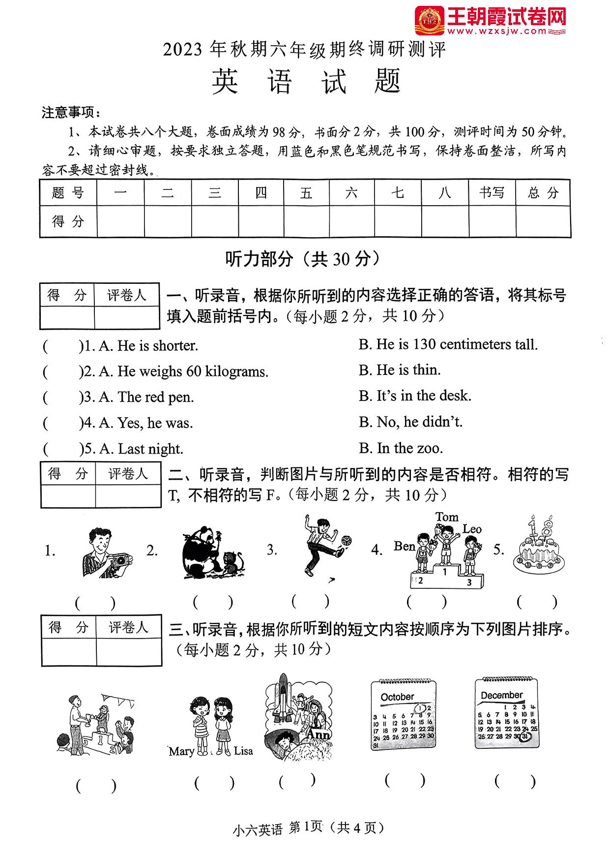 六年级英语北师版上册期末卷