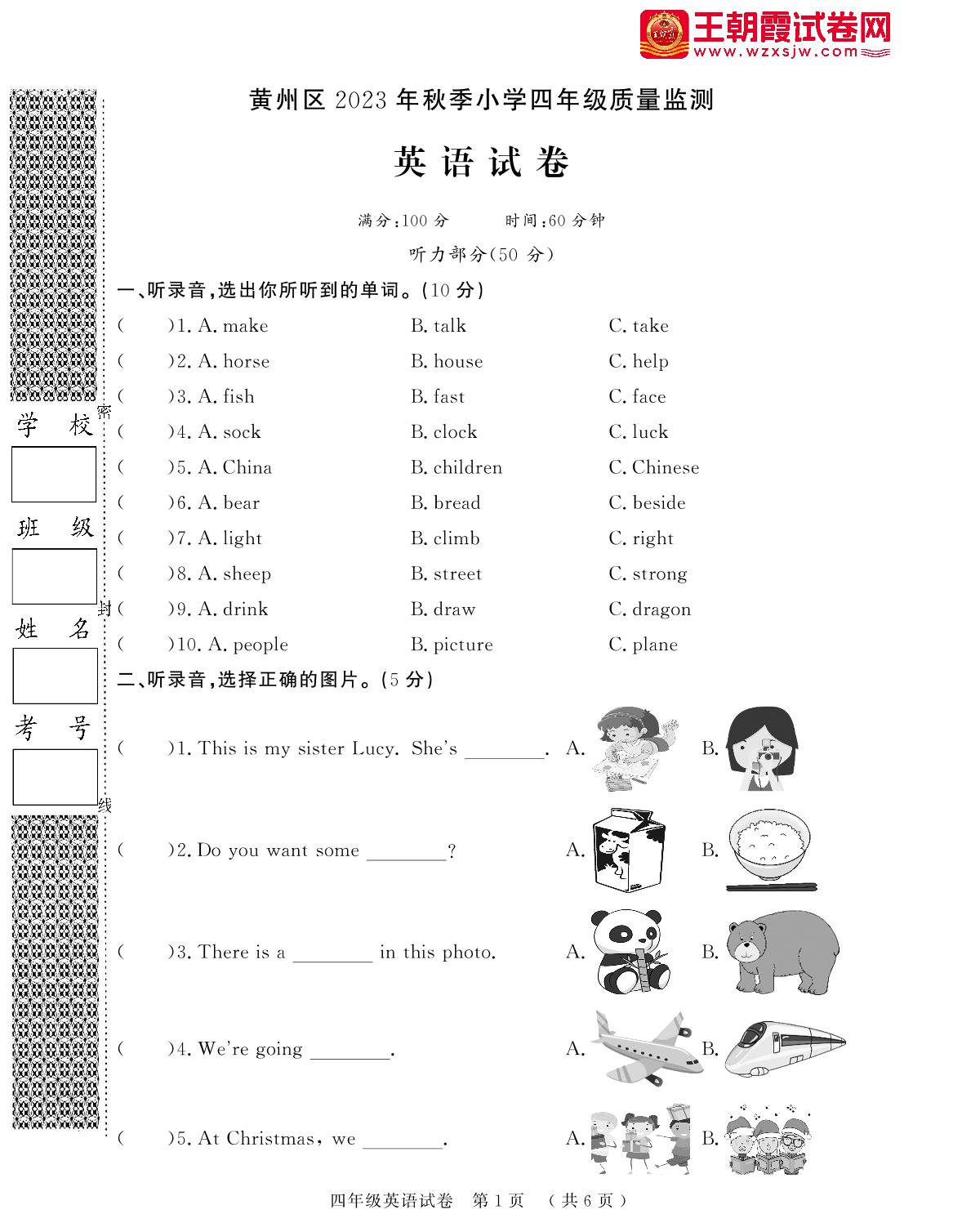 湖北省黄冈市黄州区2023年秋季小学期末质量监测试卷四年级英语(外研版)【无听力音频】