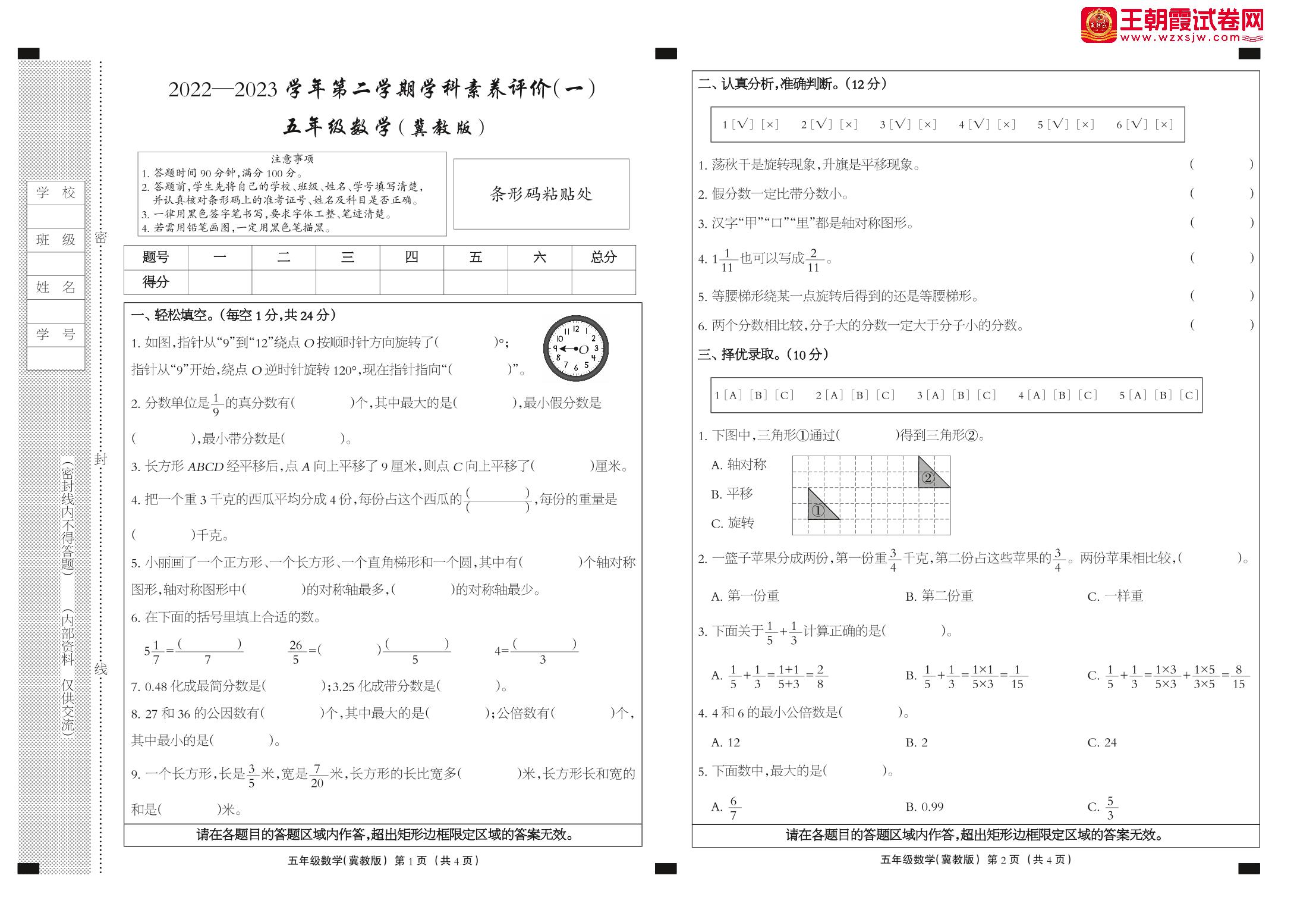 河北省邢台市南宫市2022-2023学年第二学期学科素养评价(一)3月月考五年级数学(冀教版)