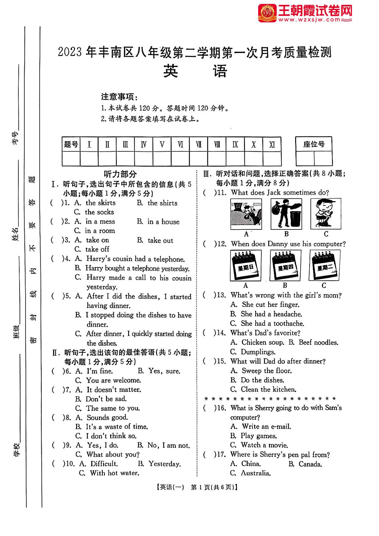 河北省唐山市丰南区2022-2023学年第二学期第一次月考质量检测八年级英语(冀教版)