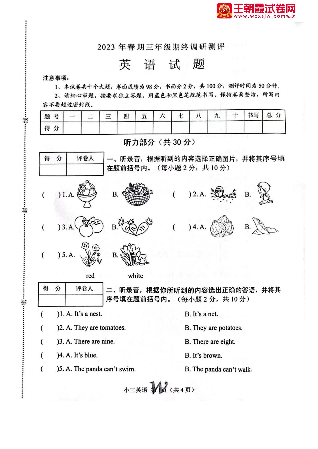 河南省南阳市卧龙区2022—2023学年下学期期末考试试题三年级英语(北师版)【无听力音频】