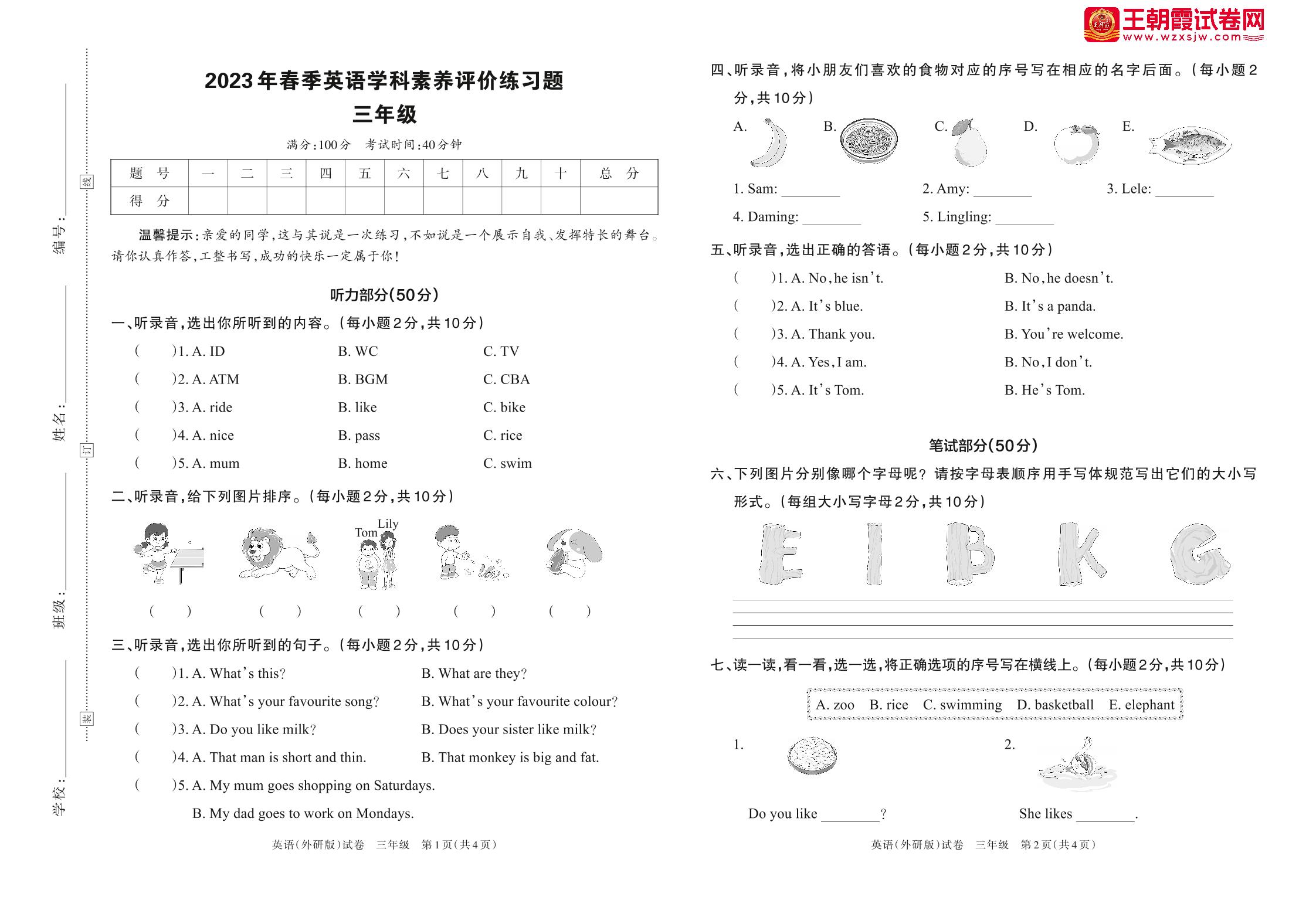 河南省平顶山市鲁山县2022—2023学年下学期英语学科素养评价练习题三年级(外研版)